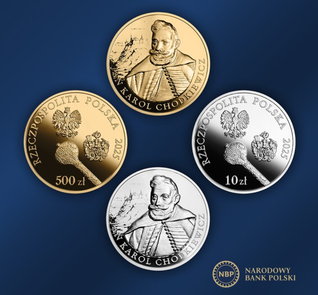 Narodowy Bank Polski poinformował o emisji kolejnych monet kolekcjonerskich z serii „Hetmani Rzeczypospolitej”. „Jan Karol Chodkiewicz” to srebrne i złote monety o nominałach kolejno 10 i 500 zł. Pierwsza z monet została wykonana ze srebra o próbie Ag 999, ma średnicę 32,00 mm i masę 31,10 g. Do wykonania monety o większym nominale użyto złota o próbie Au 999,9. Jej wymiary i masa są takie same, co w przypadku monety srebrnej.