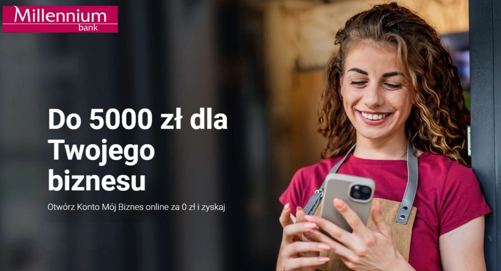Promocja Banku Millennium to obecnie absolutny rekord pod względem kwoty. Choć zdobycie pełnych 5000 zł wymaga skorzystania z dodatkowych usług (terminal, leasing), to już same bonusy za ZUS i płatności telefonem (łącznie 2400 zł) są niezwykle atrakcyjne i łatwe do zdobycia przy standardowym prowadzeniu firmy.