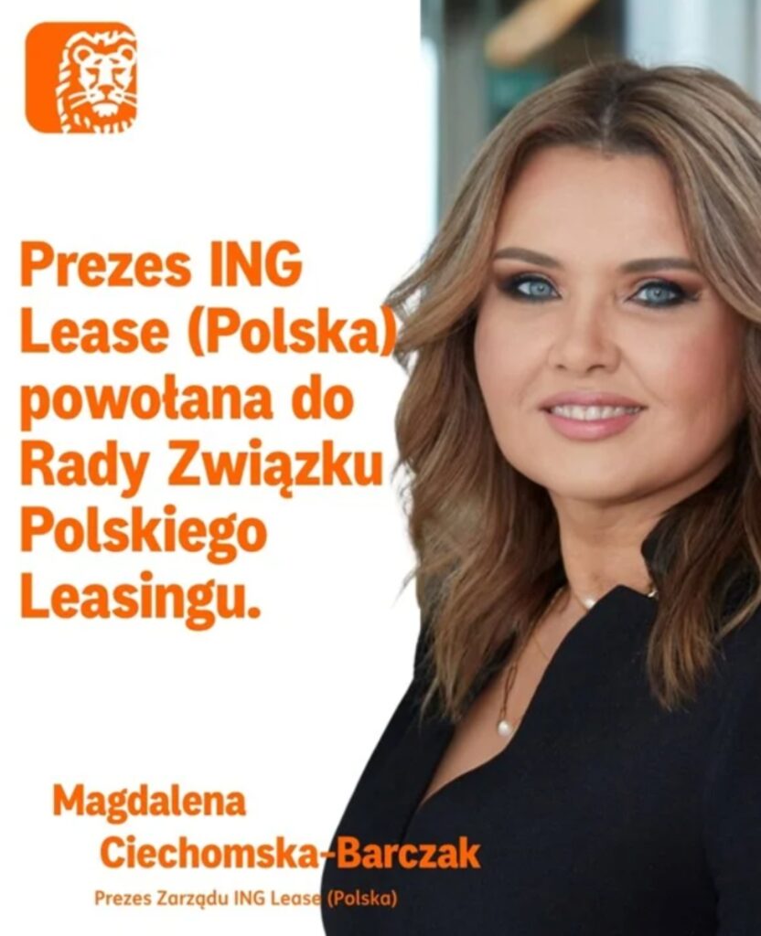 Magdalena Ciechomska-Barczak to Prezes ING Lease (Polska) od czerwca 2025 roku. Z samą Grupą ING jest związana od 2020 roku. Wcześniej pełniła w niej funkcję wiceprezesa zarządu ING Commercial Finance Polska. W swojej karierze zawodowej związana była również z Pekao Factoring, gdzie stworzyła największą w tym czasie spółkę faktoringową w Polsce.