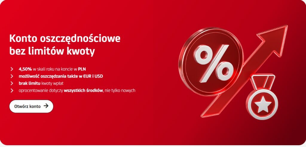 4,5% na Koncie oszczędnościowym bez limitu środków! (do 31 marca 2026)